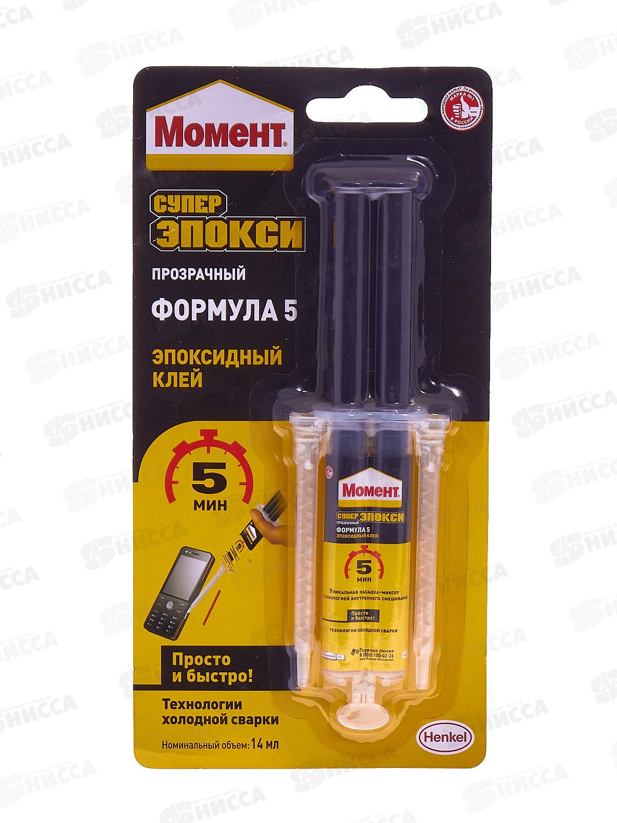 Клей Момент СУПЕР ЭПОКСИ Формула-5, прозрачный, 14 мл шприц, 1405797 *24