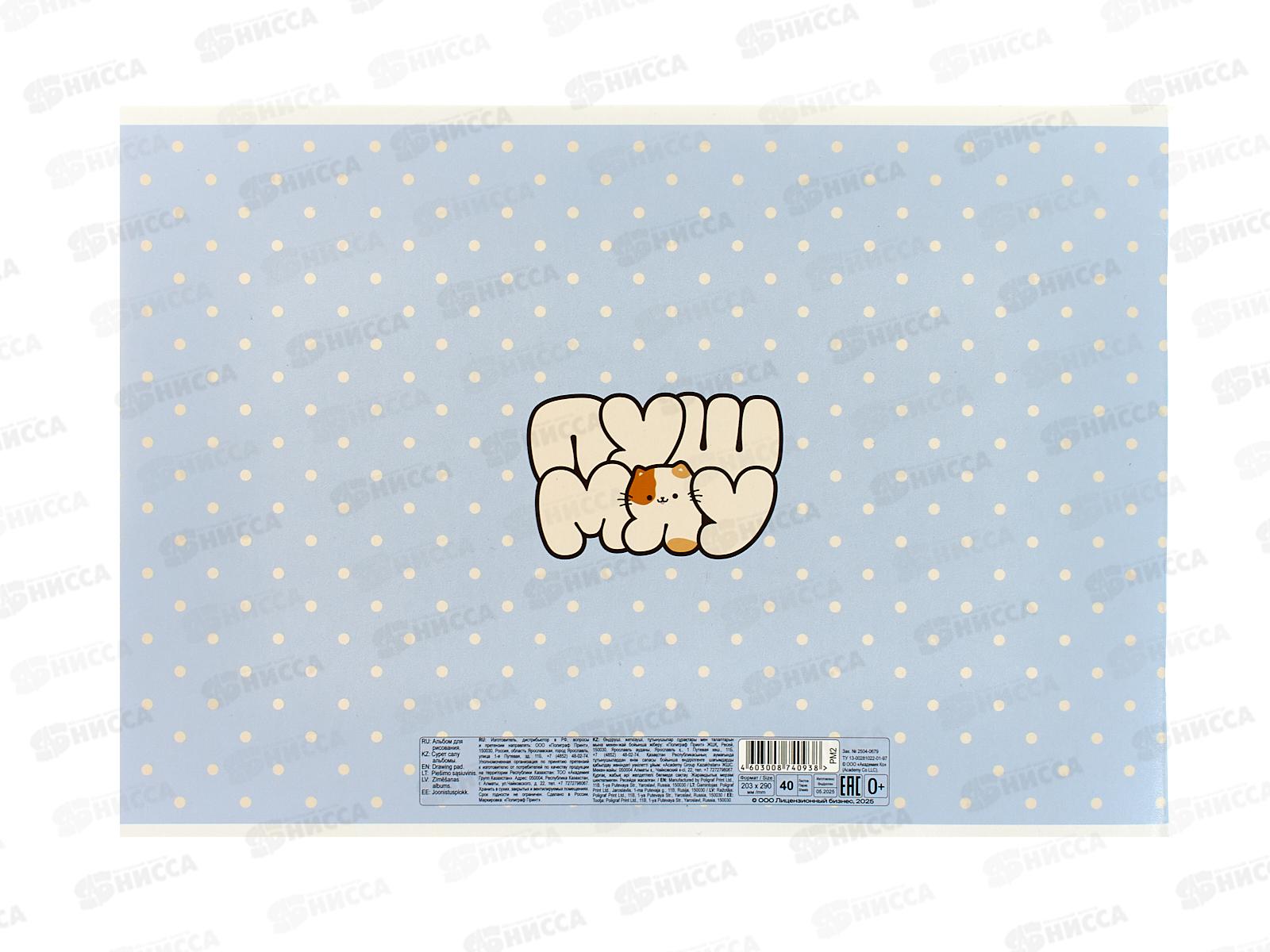 Альбом д/рис.40л АКАД Пушмяу А4, скрепка EAC-РМ2 *30