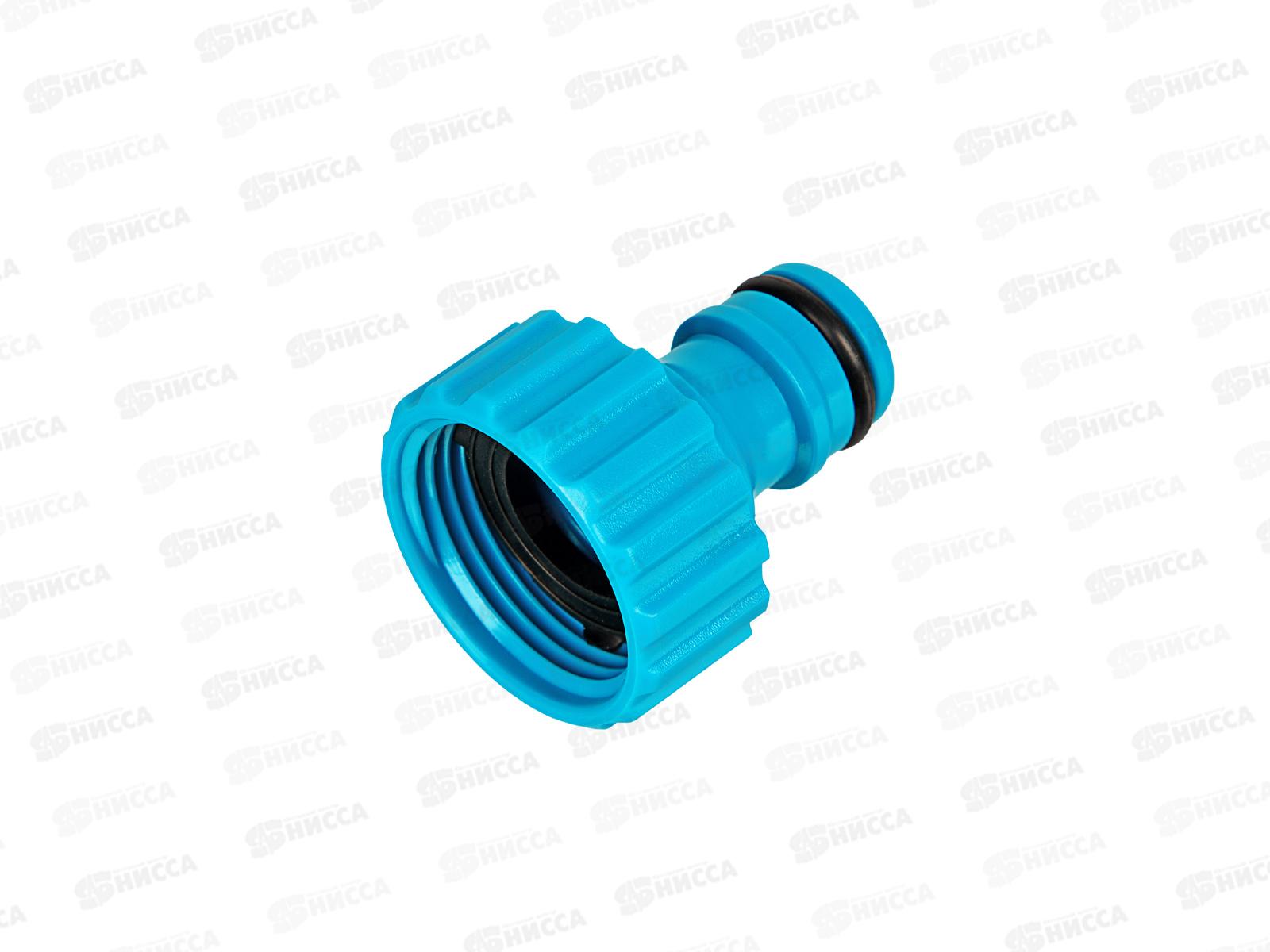 Пластмассовый адаптер Palisad 66180 с внешней резьбой 3/4" и переходным соединением интегрируется в поливочную линию для подключения к соединителю...
