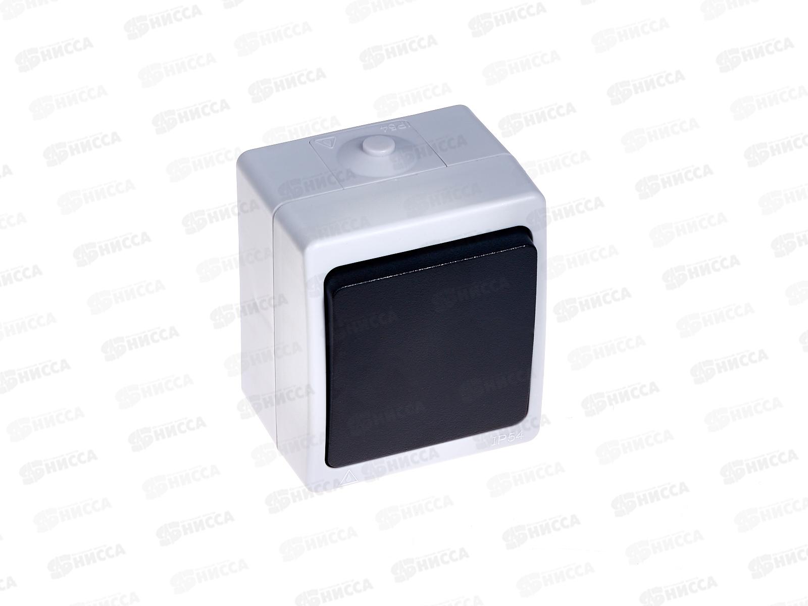 Код:482610; Переключатель Feron 1-клавишный б/з, 250В, 16А, PSW10-112-54, серый/графит