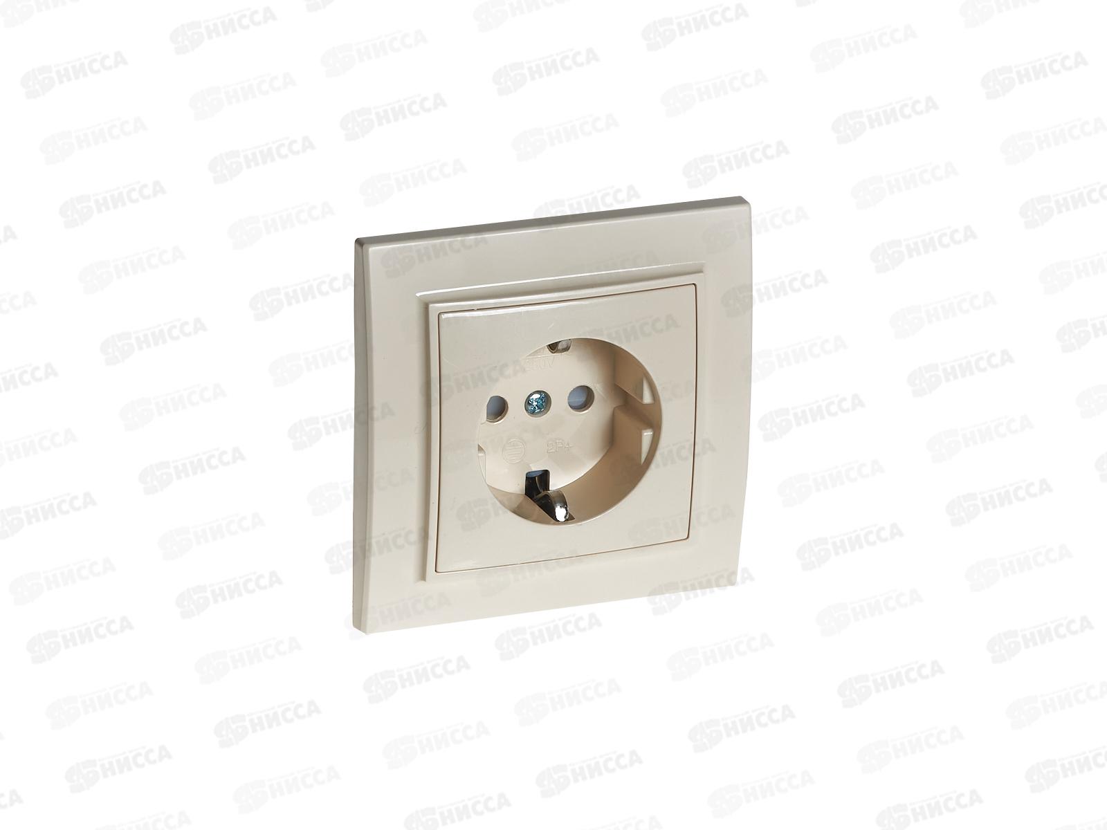 Код:482826; Розетка Эрна 1-местная, с заземлением, PST16-9010-02, слоновая кость