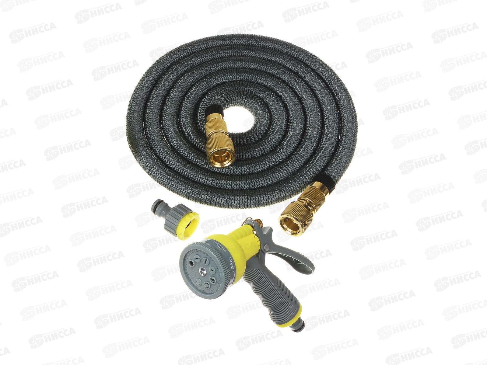 Код:293172; Шланг поливочный растягивающийся 15м тканевая оплетка с пистолетом 1/2 168-004 г