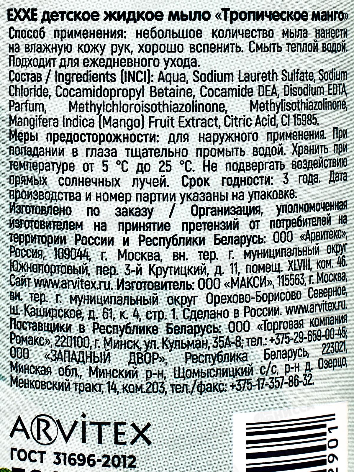 EXXE Baby Жидкое мыло "Тропическое манго" 500мл С0007704