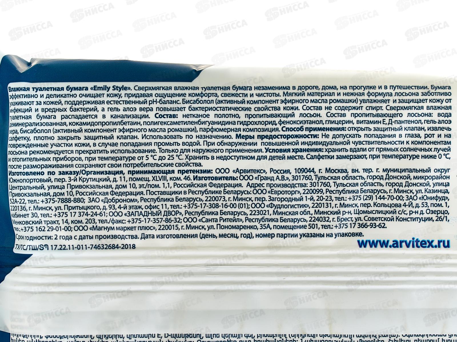 Emily Style Влажная туалетная бумага Премиум 40шт растворяющаяся С0008116
