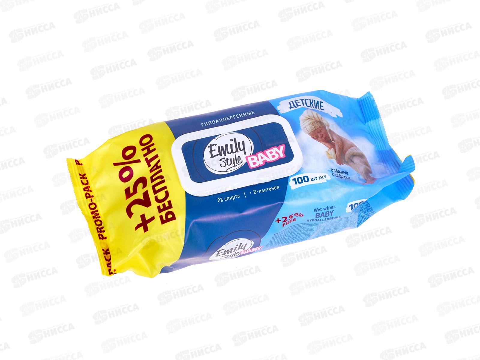 Код:579085; Emily Style Влажные салфетки 100шт Детские 0+ с крышкой С0008176 *14