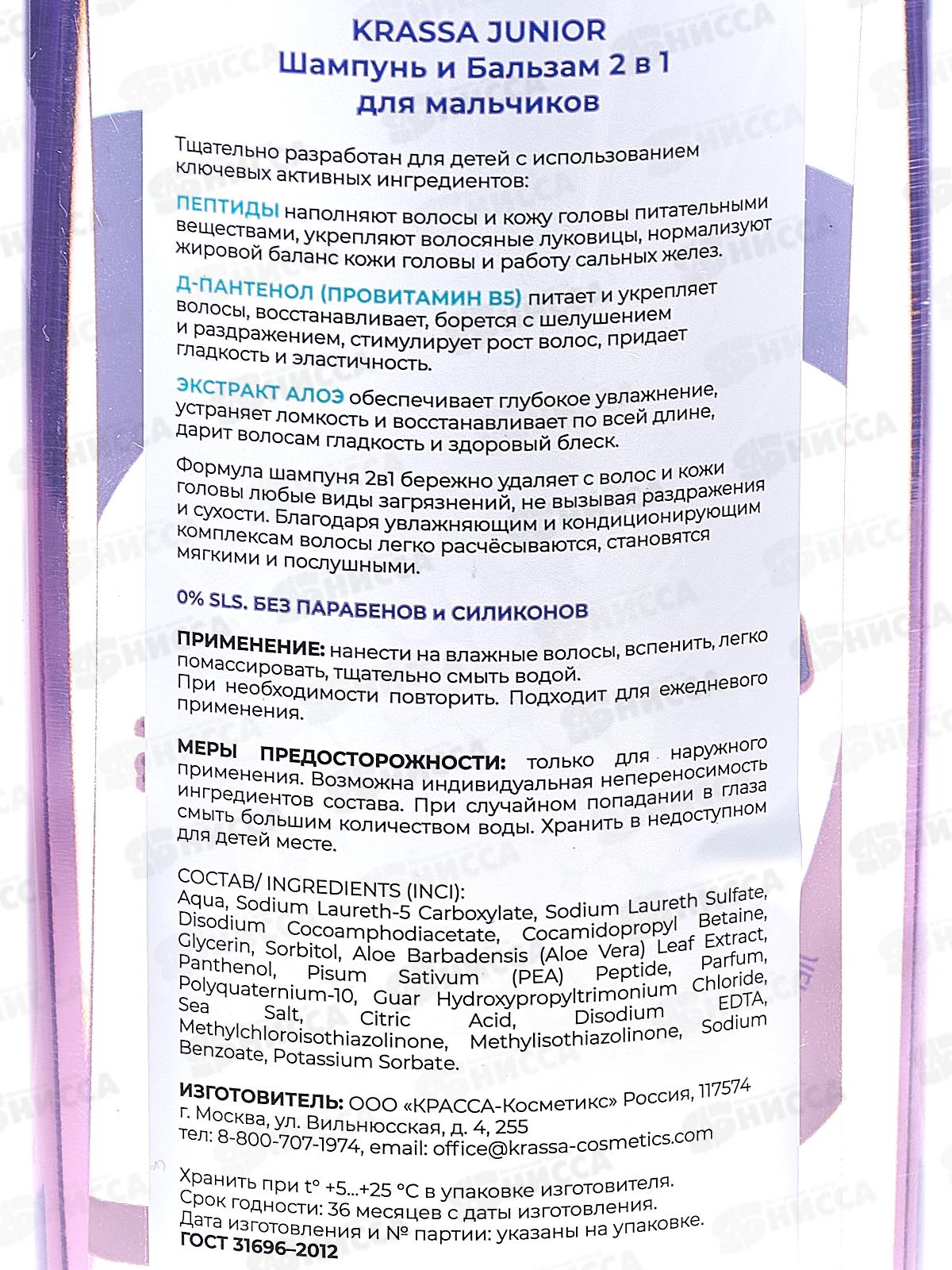 Krassa Junior шампунь+бальзам 2в1 для мальчиков 250мл *12