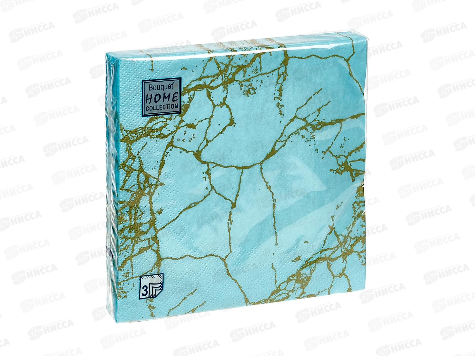 Код:518409; Салфетки 3 слойные 20 листов 33*33 Bouquet Home Мрамор золотой на тиффани,57508*12