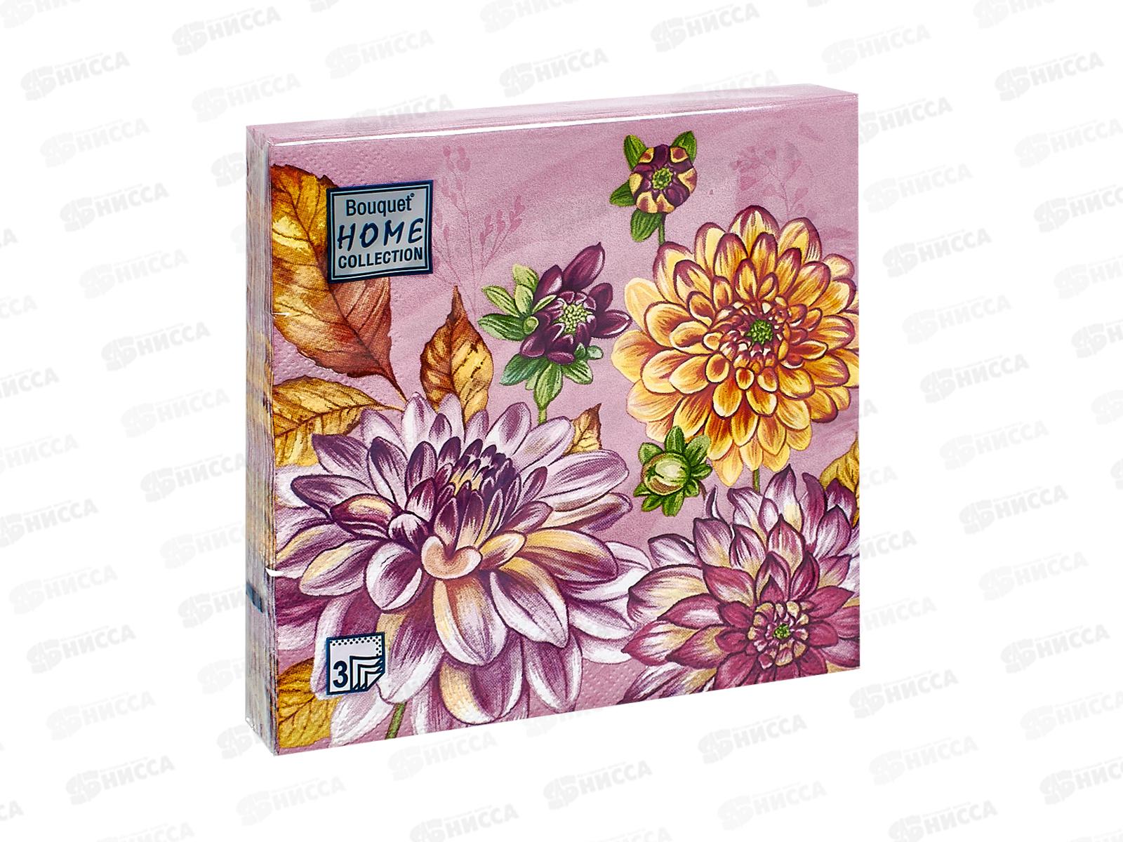 Код:572209; Салфетки 3 слойные 20 листов 33*33 Bouquet Home Георгины на розовом, 25338*12