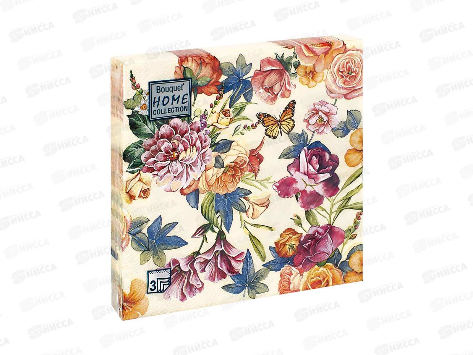 Код:572210; Салфетки 3 слойные 20 листов 33*33 Bouquet Home Красивые цветы.Крем.фон,25366*12
