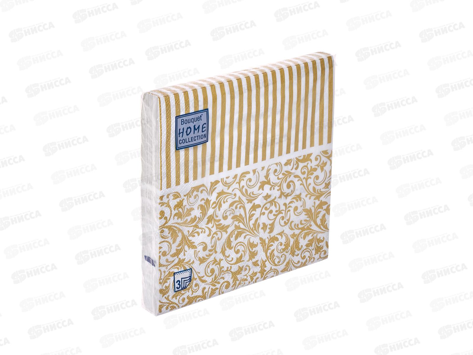 Код:580034; Салфетки 3 слойные 20 листов 33*33 Bouquet Home Золотые узоры и полосы,25021*12