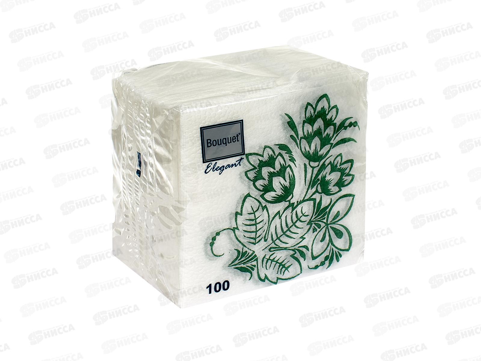 Код:561216; Салфетки 1 слойные 100 листов 24*24 Bouguet Elegant Узоры зеленые, 57370 *16