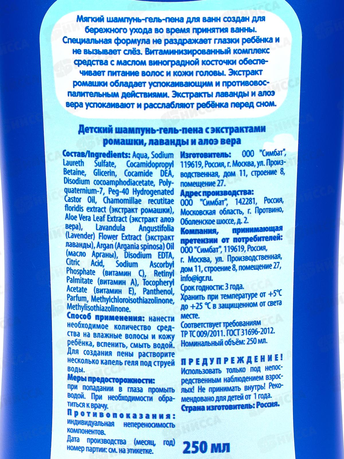 Активные компоненты шампуня: экстракты ромашки, лаванды и алоэ вера, витамины А, С, Е
