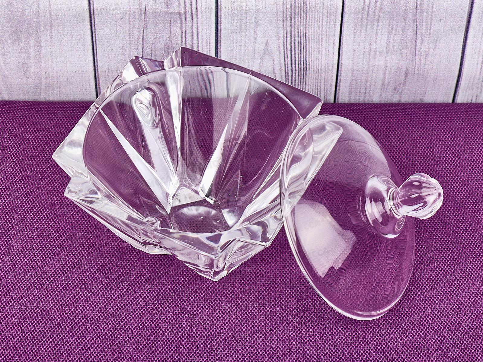 Кристально прозрачная ваза внесет нотку праздника в повседневную жизнь и послужит оригинальным украшением торжественного стола. Она изготовлена из высококачественного, экологически чистого стекла и снабжена крышкой с удобной ручкой, предохраняющей содержимое от высыхания. Изящная вазочка - идеальный вариант для хранения и подачи различных сладостей (печенья, драже, конфет, зефира, пастилы) к вечернему семейному чаепитию. Благодаря сверкающим алмазным граням любимые лакомства в ней будут смотреться необычайно привлекательно.