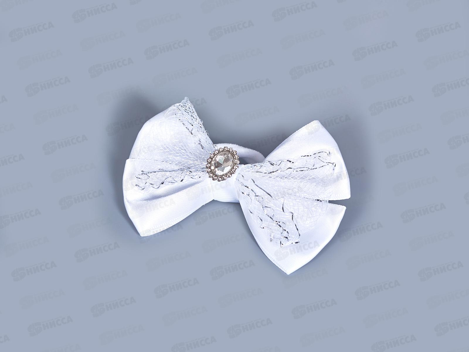 Бант шелк капрон стразы камень белый 9см №151