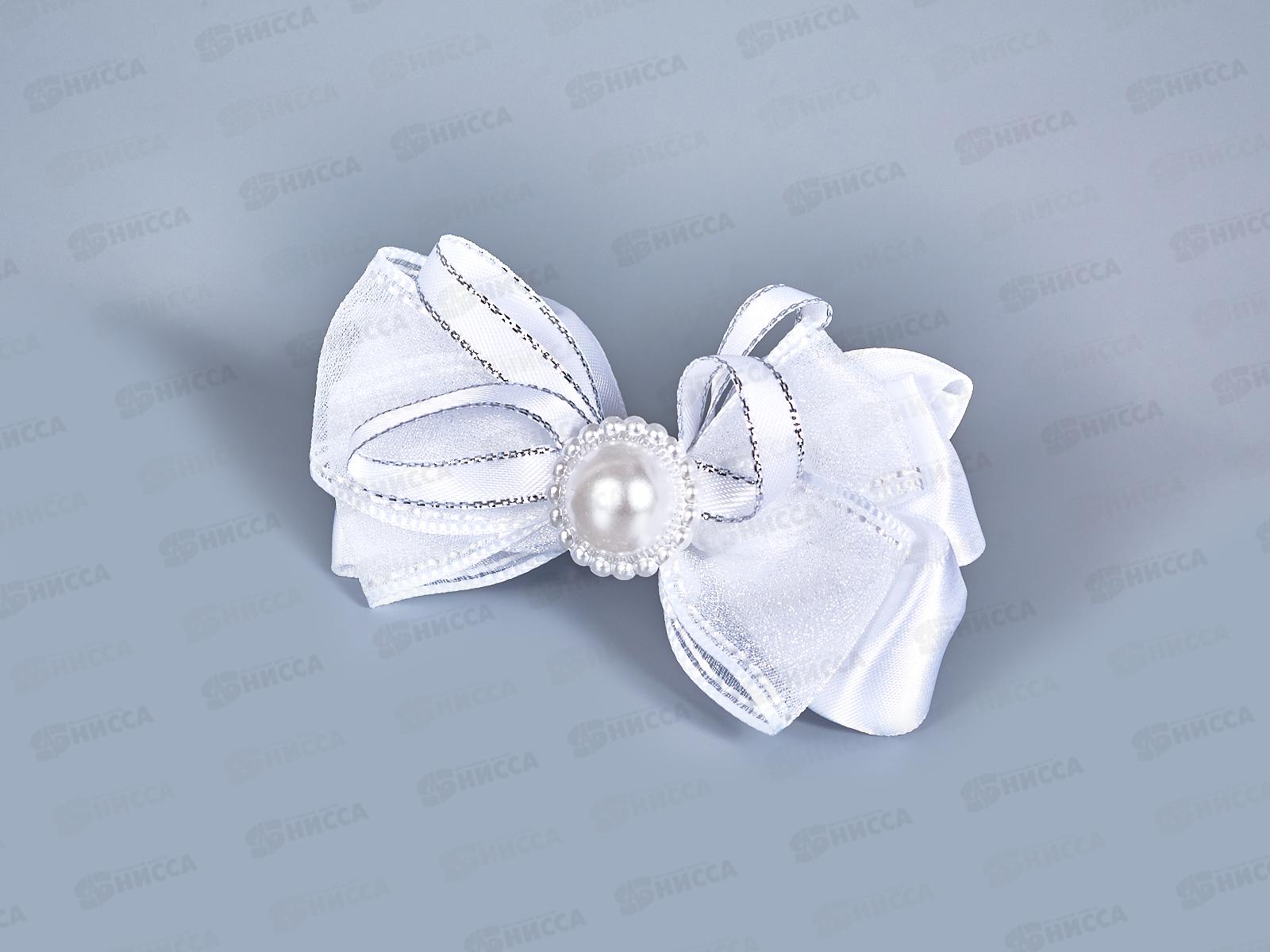 Код:499108; Бант с зажимом "Утка" шёлк,капрон,жемчуг,стразы бел. 14см.№8063