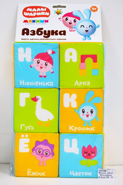 Развиваемся в игре вместе с любимыми героями мультфильма Малышарики. 6 мягких развивающих кубиков "Азбука" абсолютно безопасны для детей любог...