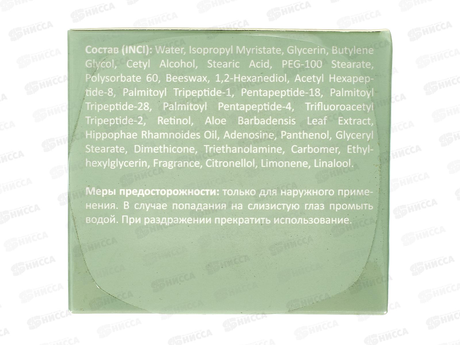 Состав: вода, изопропилмиристат, глицерин, бутиленгликоль, цетиловый спирт, стеариновая кислота, стеарат ПЭГ-100, полисорбат 60, пчелиный воск, 1,2-гександиол, ацетилгексапептид-8, пальмитоилтрипептид-1, пентапептид-18, пальмитоилтрипептид-28, пальмитоилпентапептид-4, трифторацетилтрипептид-2, ретинол, экстракт листьев алоэ вера, масло облепихи крушиновидной, аденозин, пантенол, глицерилстеарат, диметикон, триэтаноламин, карбомер, этилгексилглицерин, отдушка, цитронеллол, лимонен, линалоол.