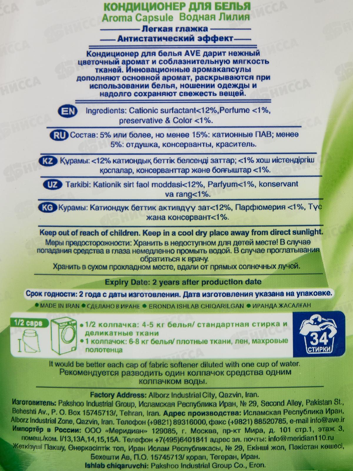 AVE Кондиционер для белья Водная лилия 1000мл 5448 *12