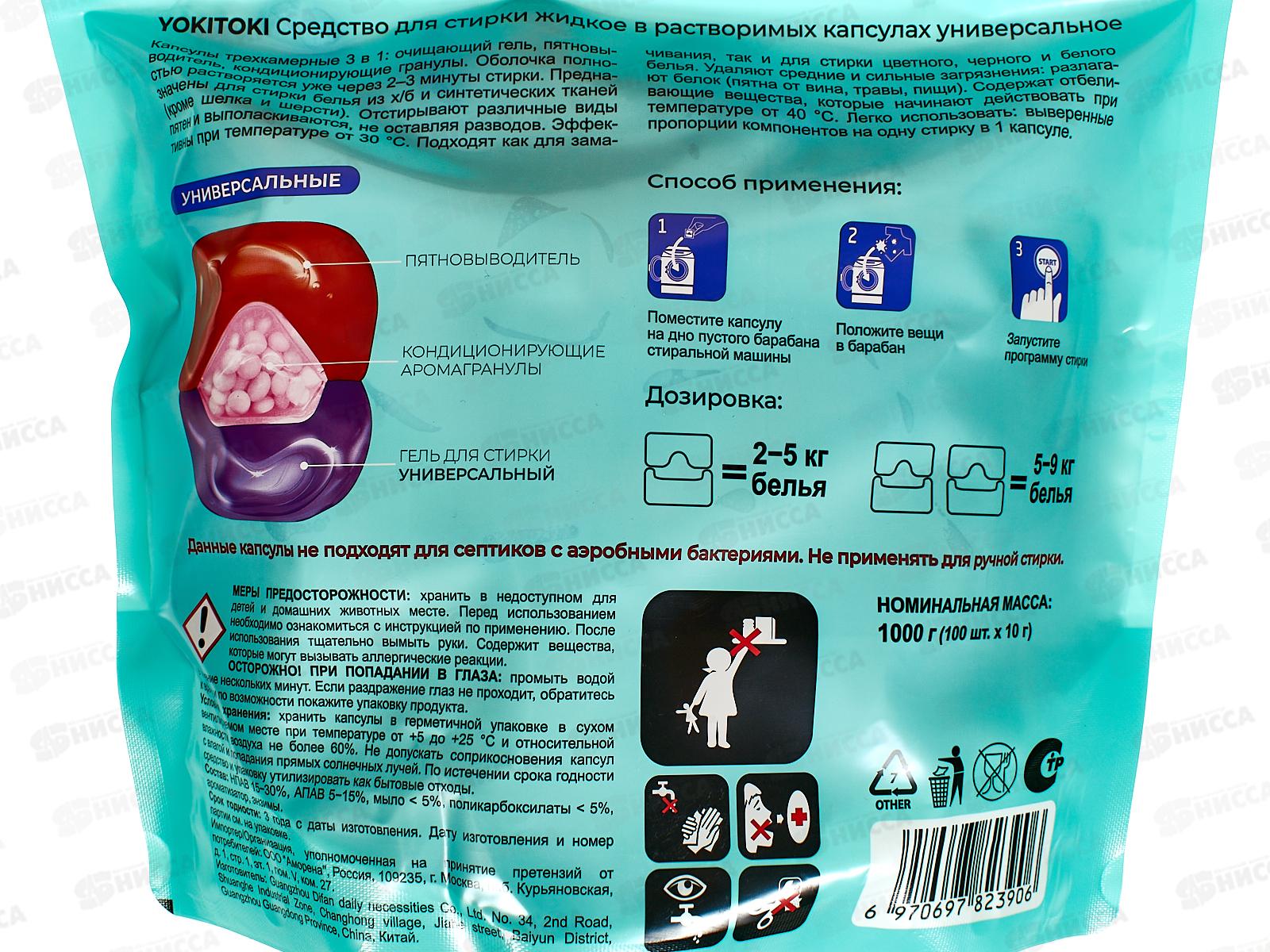 YOKITOKI Средство для стирки жидкое в капсуле 3х камерной универсальное 100шт 3906 *5