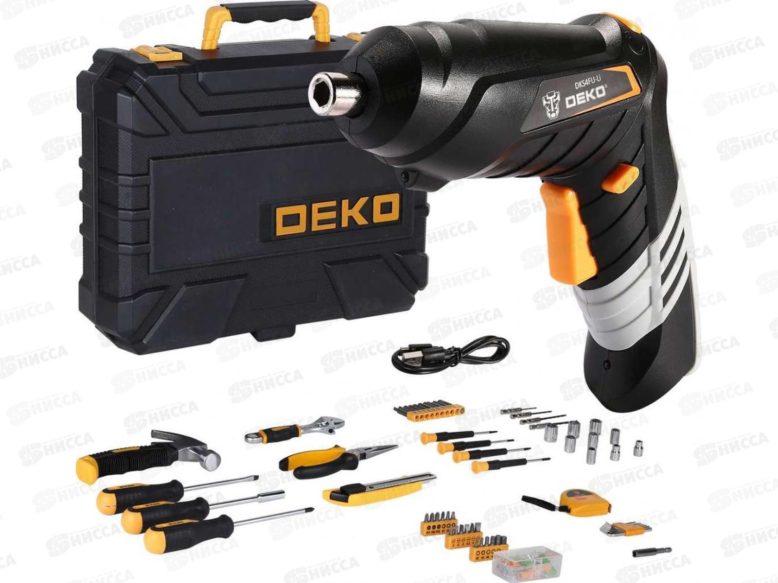 Код:510880; Отвертка аккумуляторная 3.6В, 220об/мин, 5.5Нм, 1.3Ач(Li-Ion), в кейсе + набор инструментов 112 предметов, DEKO DKS4FU-Li