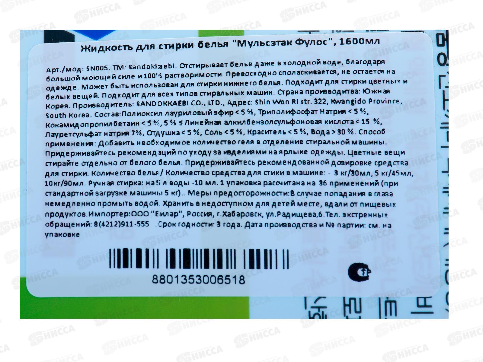 Sandokkaebi Se-Plus гель для стирки концентрат 1,6л дой-пак *8