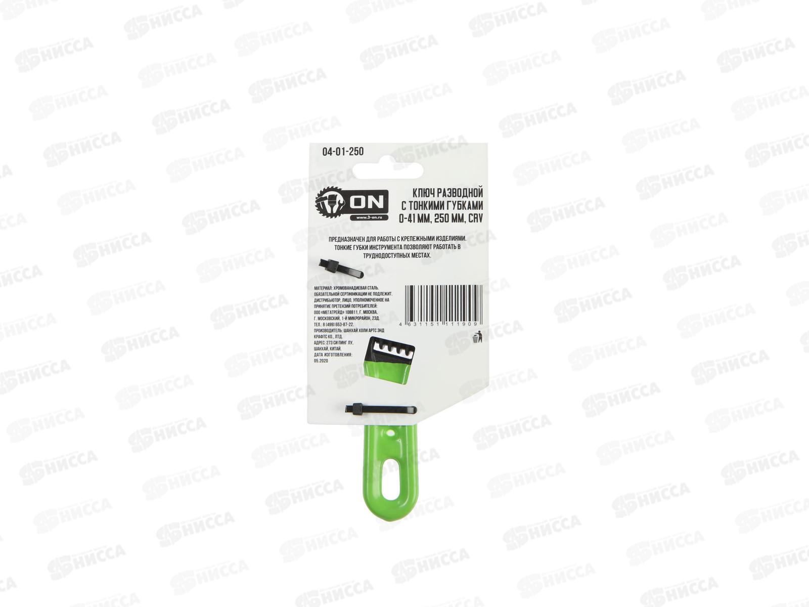 Ключ разводной c тонкими губками 0-41 мм, укороченная рукоятка, 150мм, CrV, ON