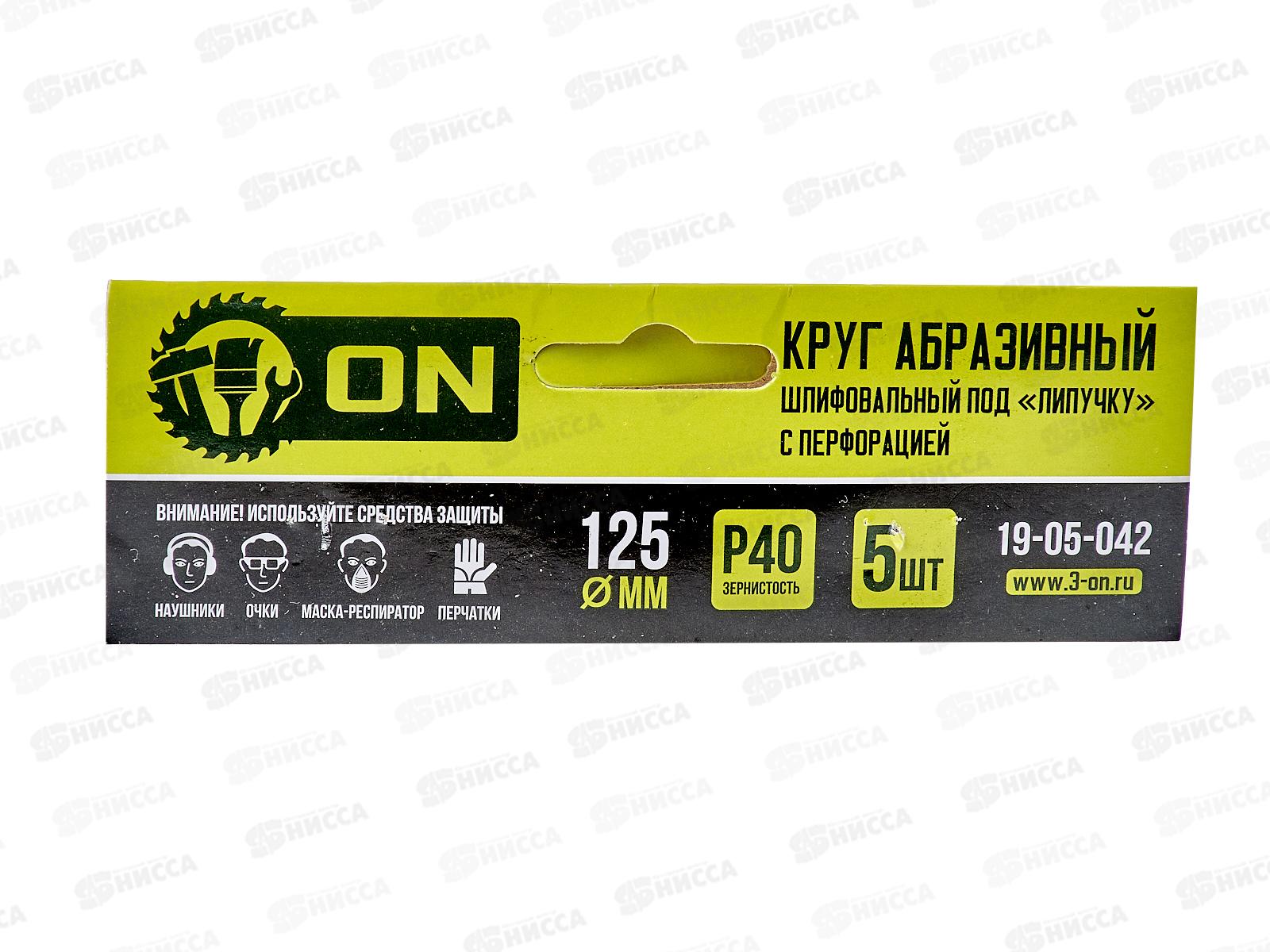 Круг абразивный шлифовальный под липучку с перфорацией 125мм Р40 5шт ON