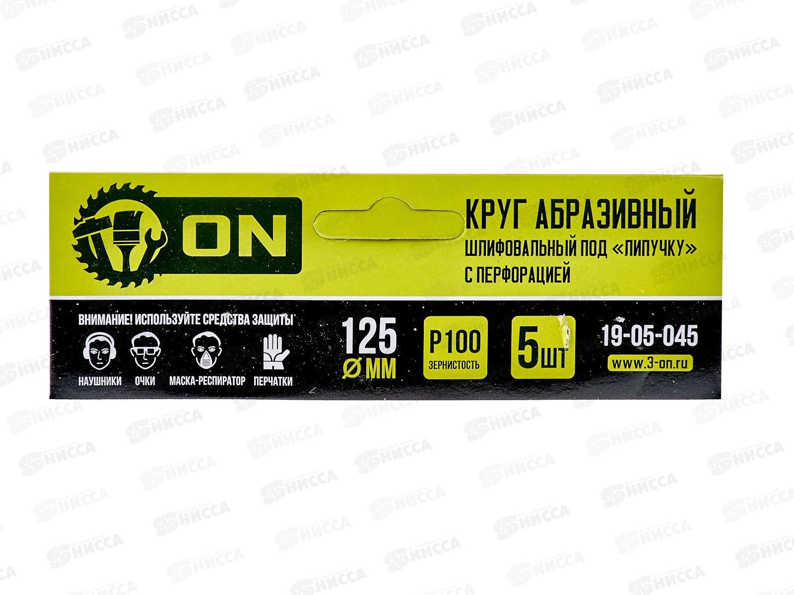 Круг абразивный шлифовальный под липучку с перфорацией 125мм Р100 5шт ON