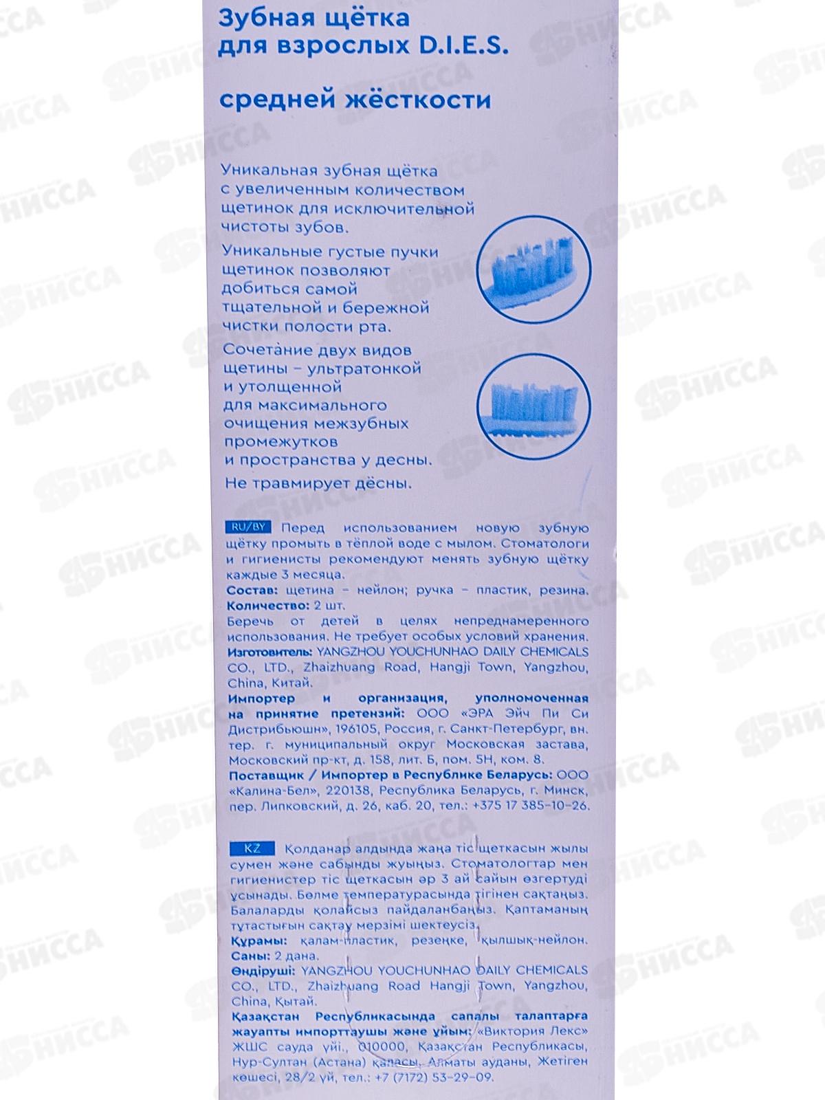 D.I.E.S. зубная щетка Diamon 1+1 средняя 2шт 9943 *12