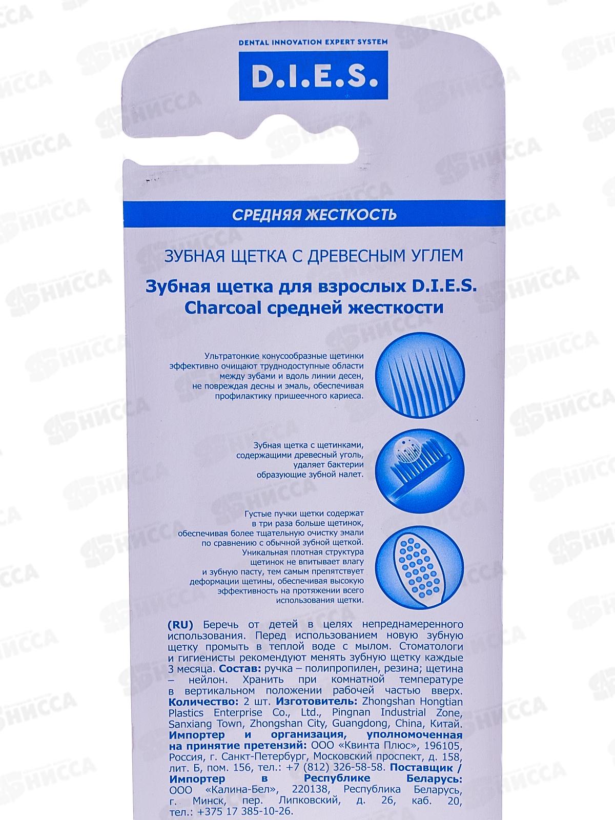 D.I.E.S. зубная щетка Charcoal 1+1 2шт средняя 9660 *12