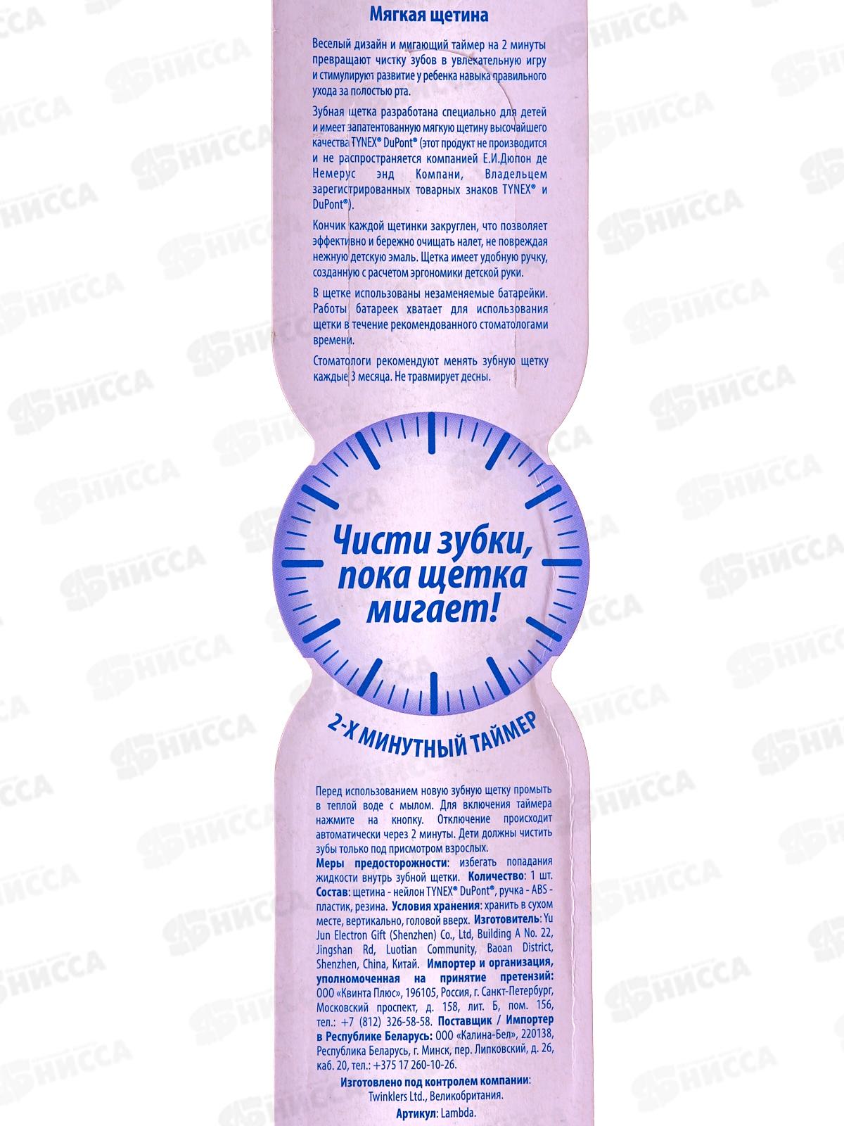 Зубная щетка с мигающим таймером превращает чистку зубов в увлекательную игру и стимулирует развитие навыка правильного ухода за полостью рта. Мигающий таймер на 2 минуты включается кнопкой, выключается автоматически через 2 минуты - рекомендованное стоматологами время чистки зубов