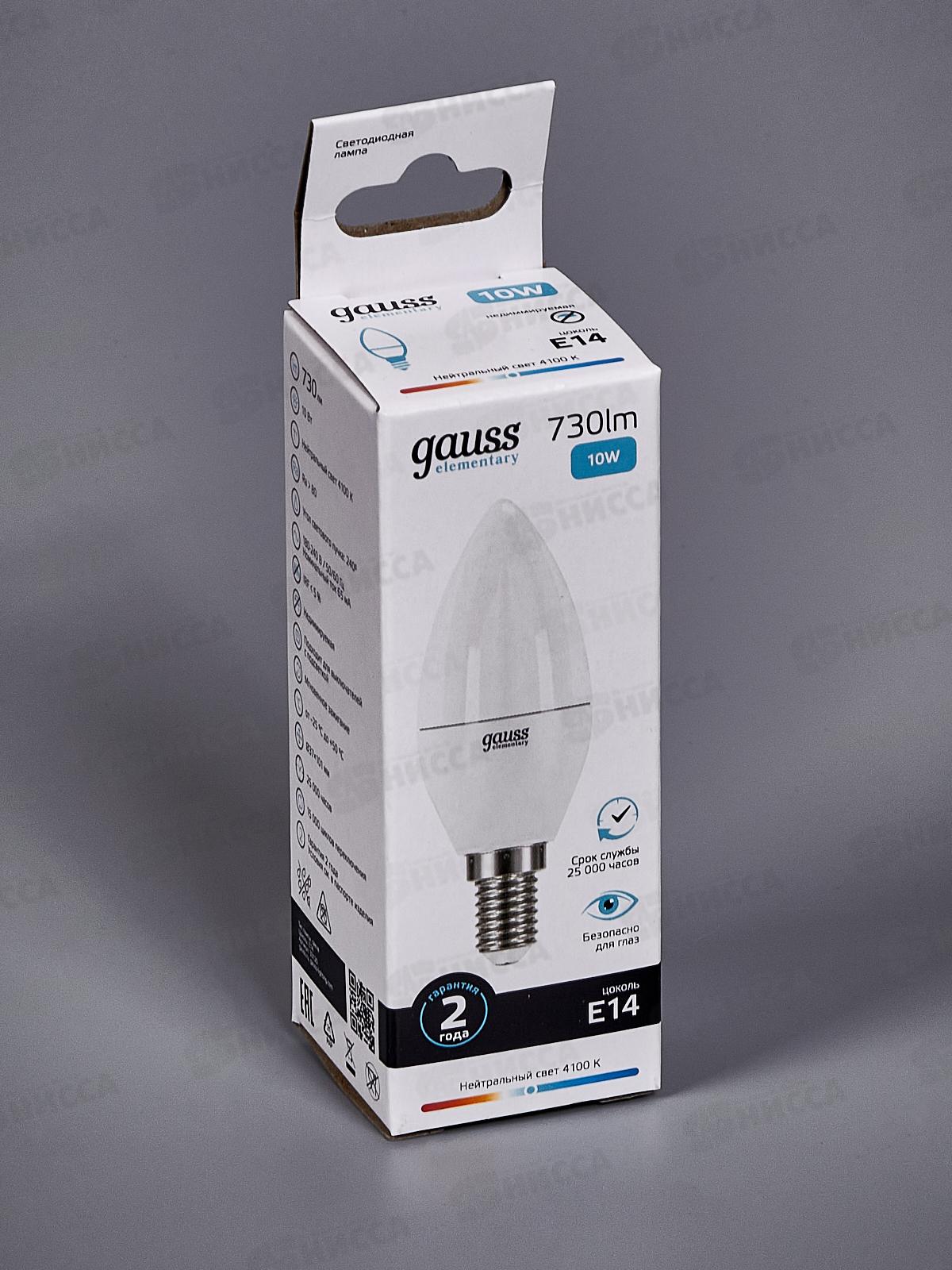 Лампа светодиодная Gauss Elementary Свеча 10Вт 730Lm 4100K Е14 33120*50