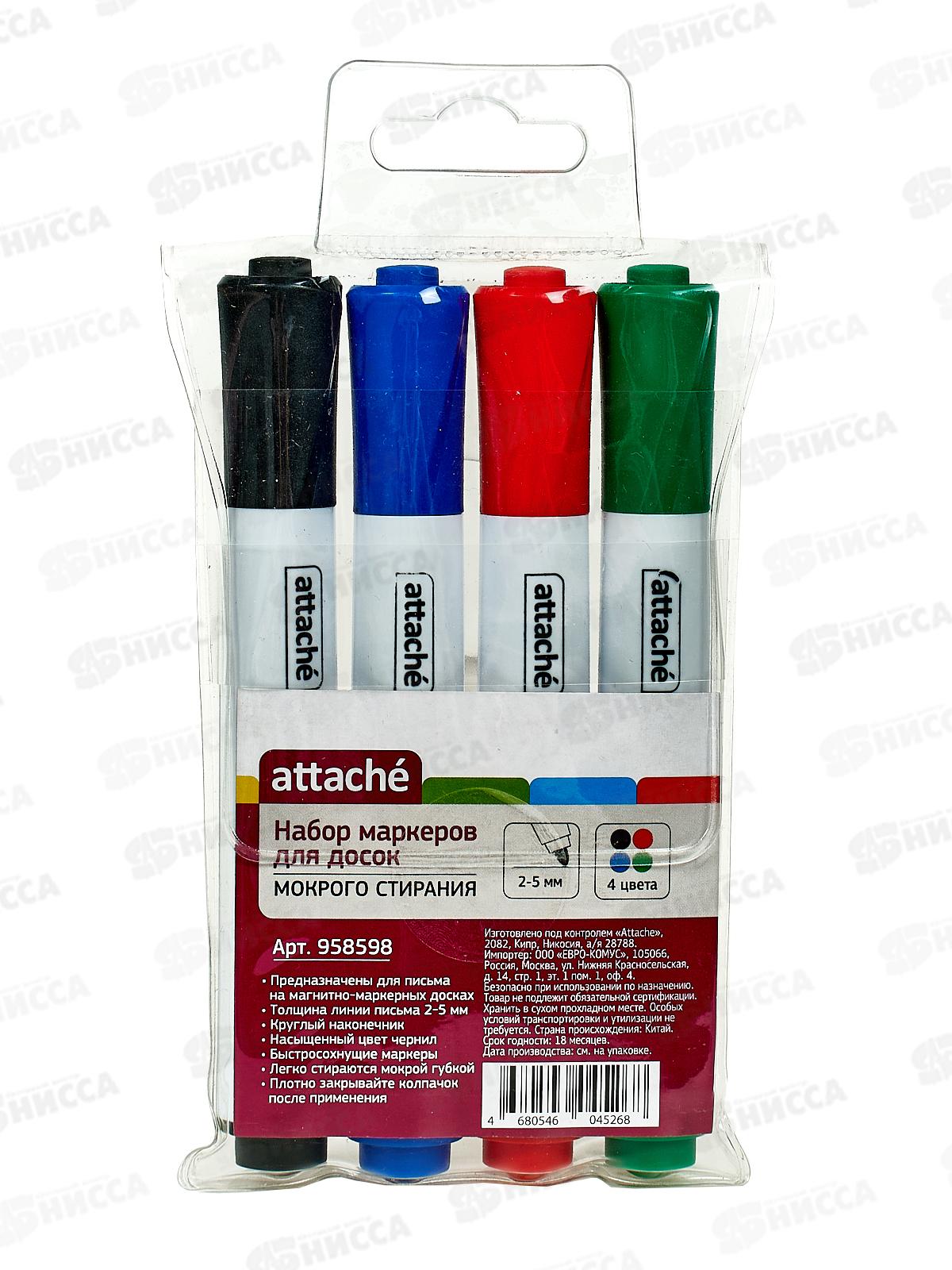 Маркер ATTACHE для досок 4 цвета, мокрого стирания,958598*24