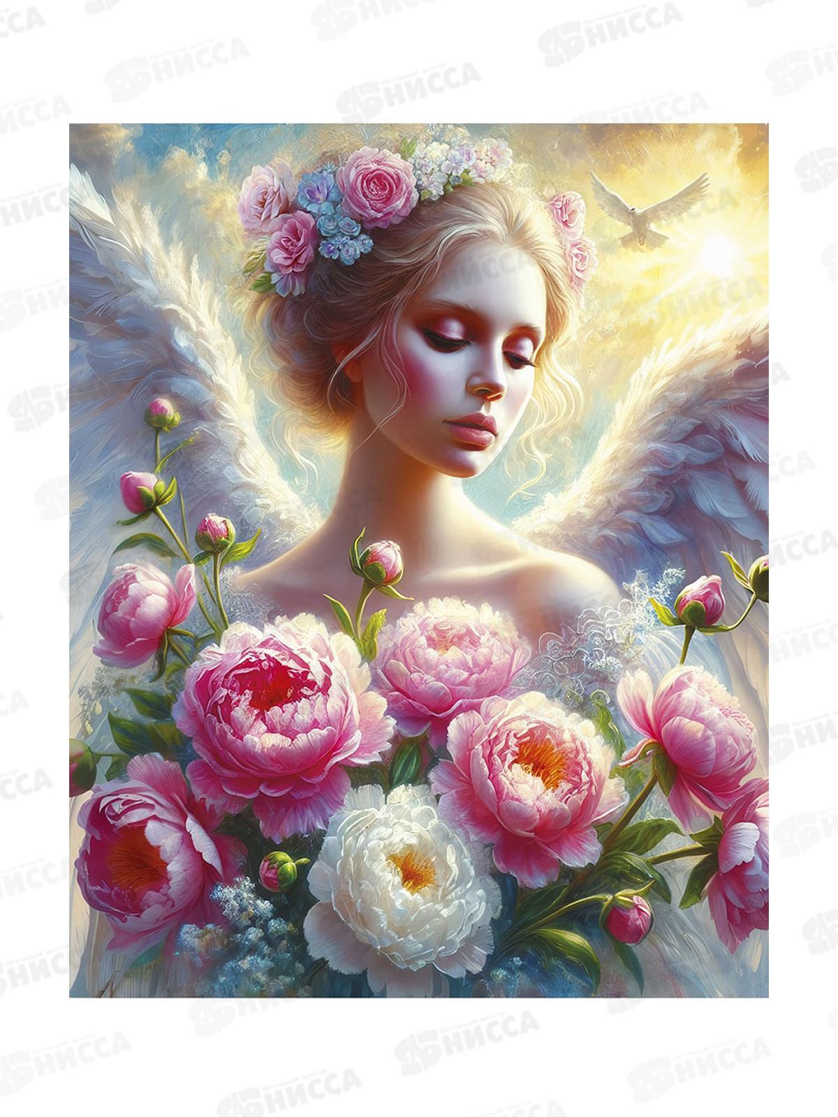 Код:602897; Алмаз. мозаика (класс.) 40х50см Ангел с цветами, НД-1275 с подр.