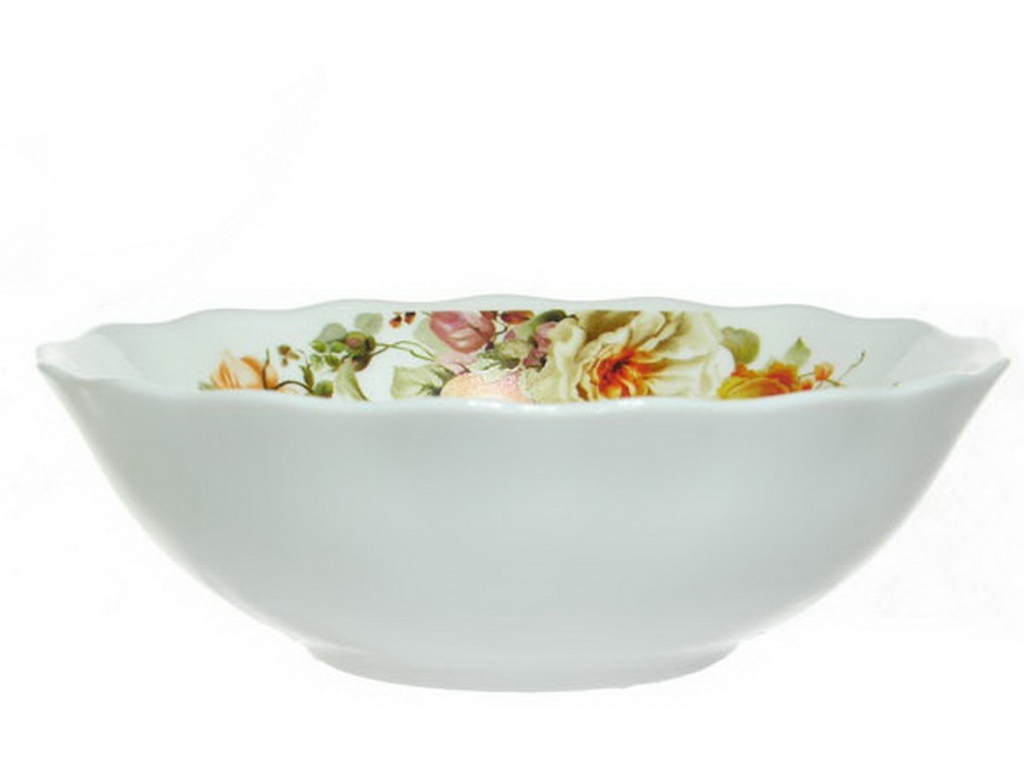 Характеристики:Артикул: 1029088Серия: "Чайная роза"Тип товара: СалатникДиаметр: 15 смОбъем: 400 млМатериал: фарфорЦвет: белыйДекор: с рисунком...