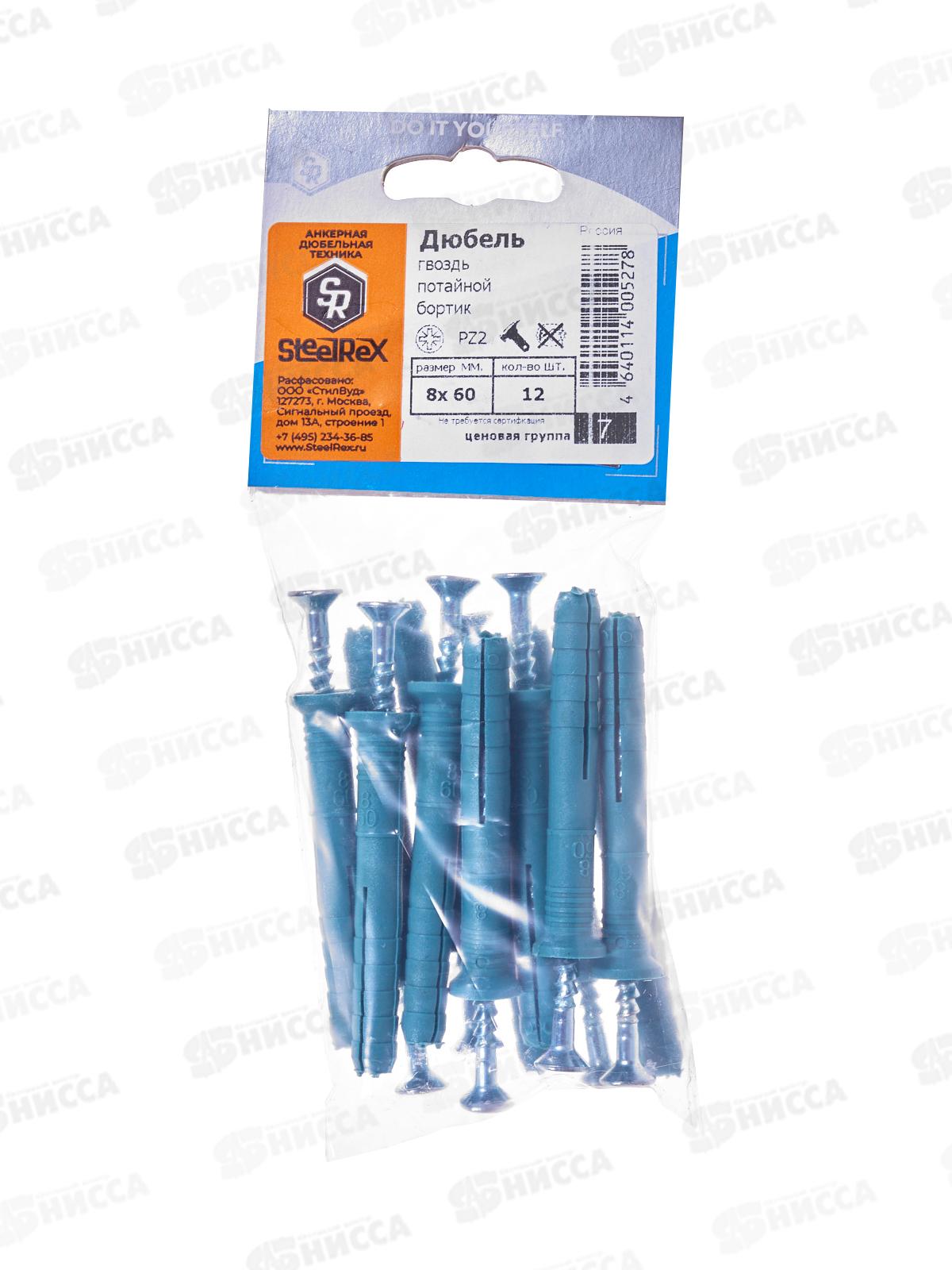Код:594278; Дюбель-гвоздь, потайной бортик РОССИЯ 8*60 12шт SR