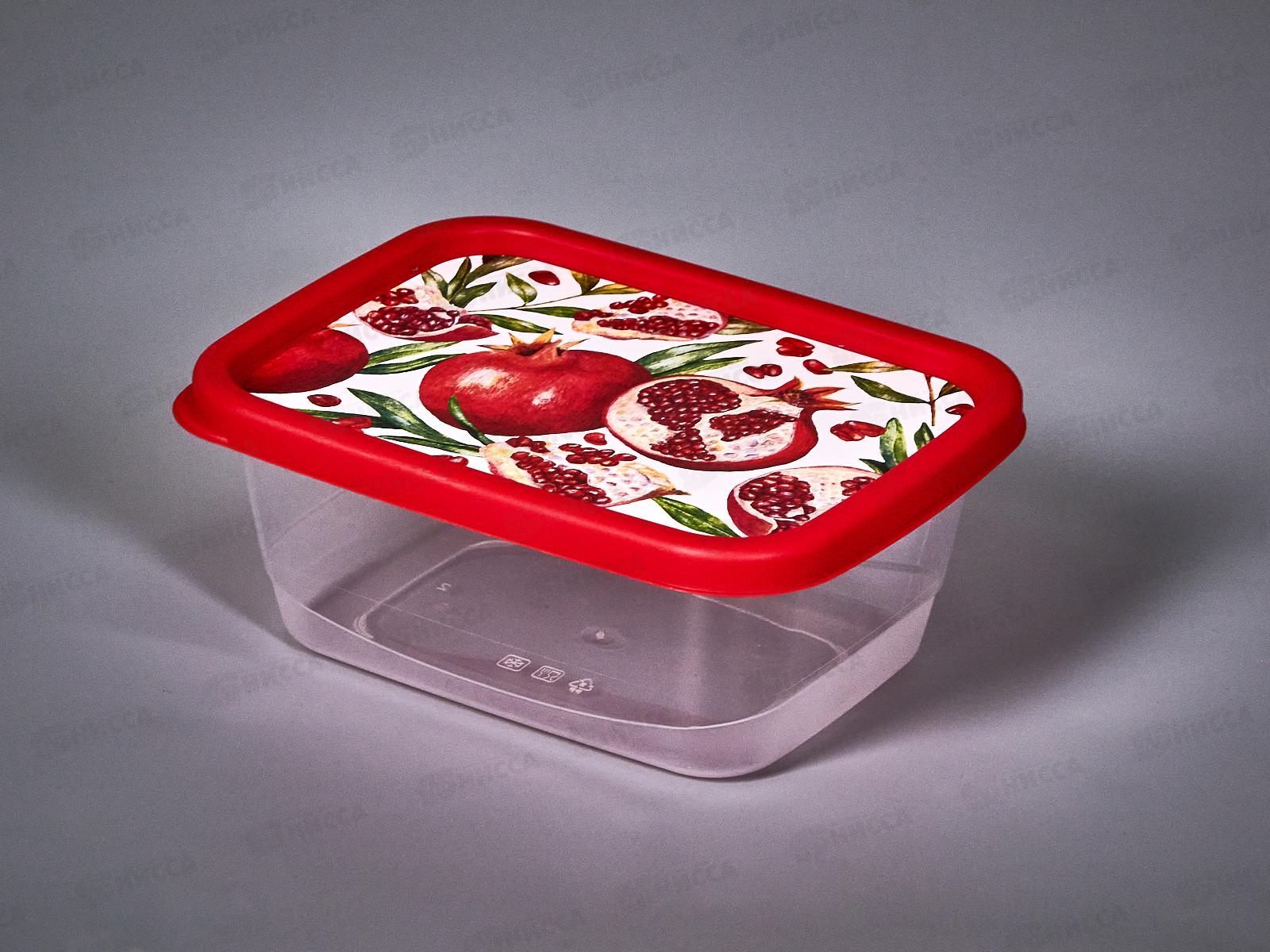 Код:508947; Контейнер для продуктов прямоугольный 0,5л с декором красный 221153606/03