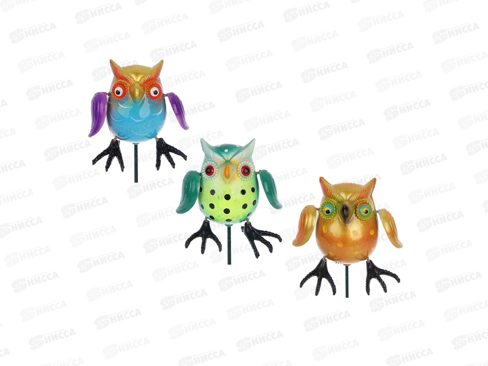 Код:604414; Штекер фигурка декор "Сова" на мет. стержне 6*10*60см, 153-203 г