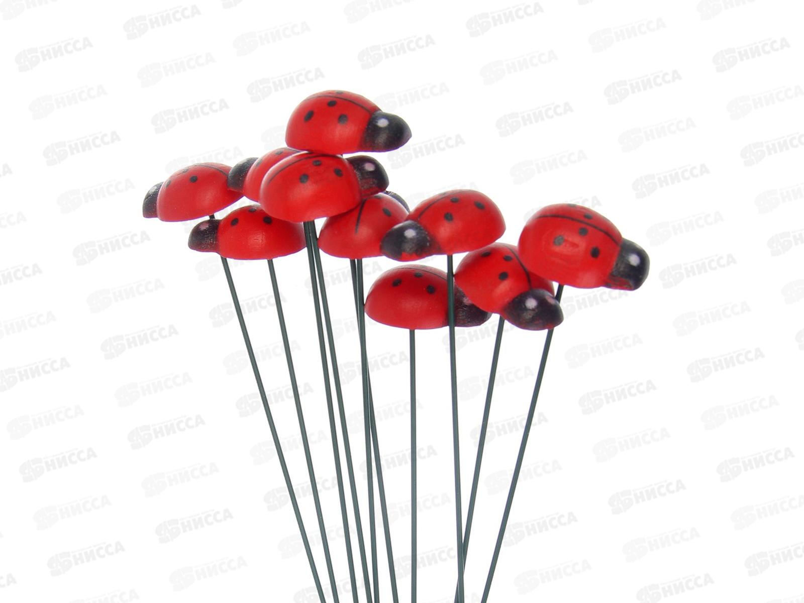 Код:604422; Штекер фигурка декор "Божья коровка" набор 10шт, 25см на мет. стержне, 153-212 г