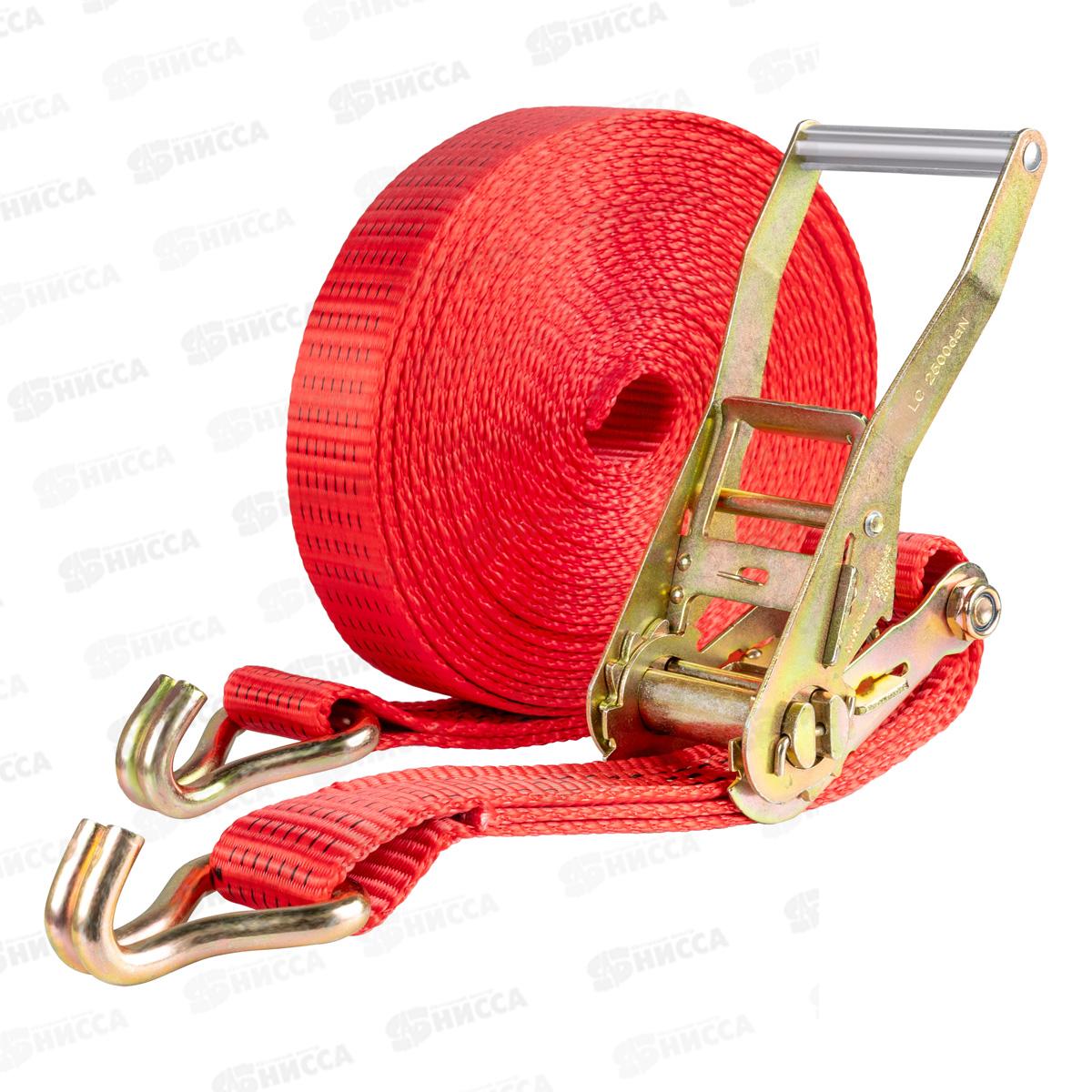 Код:587474; Стяжка груза 5,0т 10,0м SKYWAY STAFF 50мм красный храповый механизм с крюками полиэстер