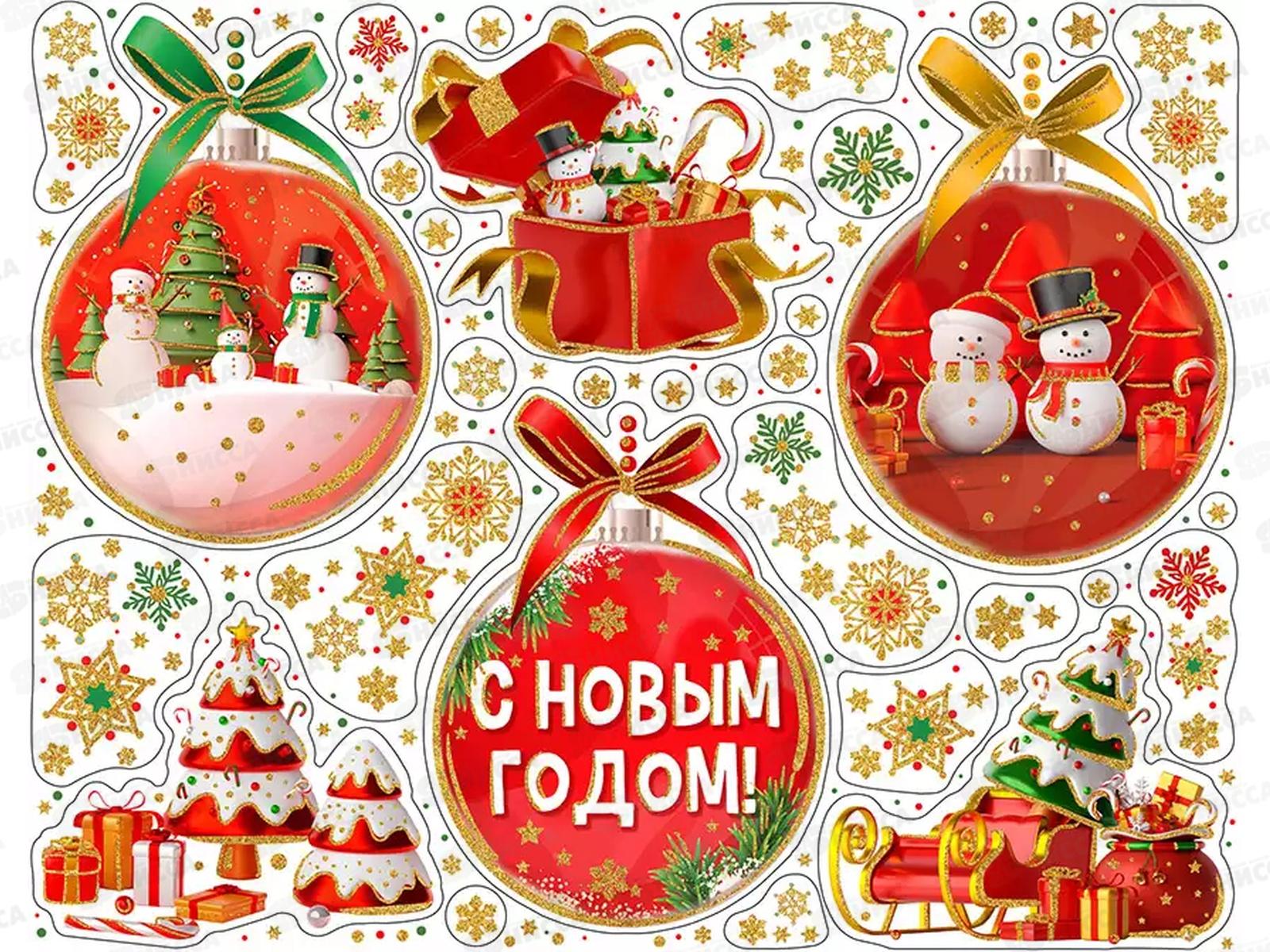 Код:542447; Наклейка на стекло Новогодние аксессуары, 30х38см, 90280