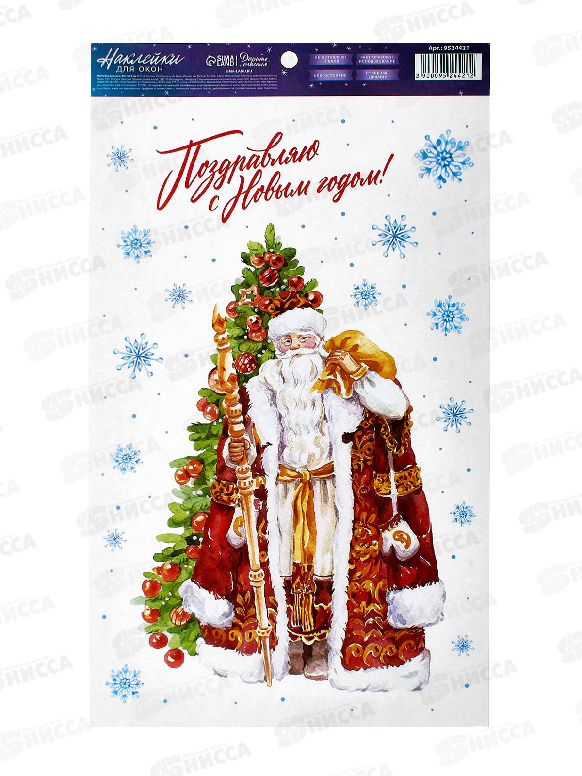 Код:542454; Наклейка на стекло Поздравление от Деда Мороза, 30х38см, 90286