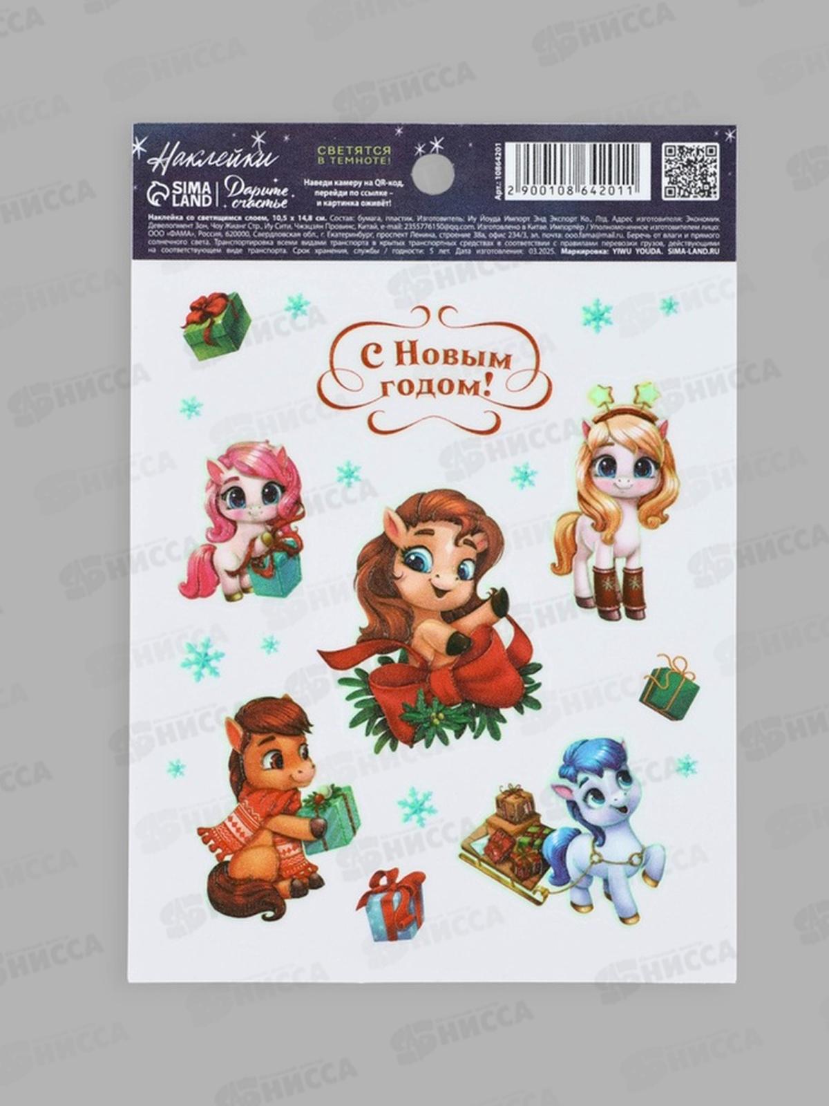 Код:588777; Наклейка со светящимся слоем "С Новым годом" 10,5*14,8см 10864201