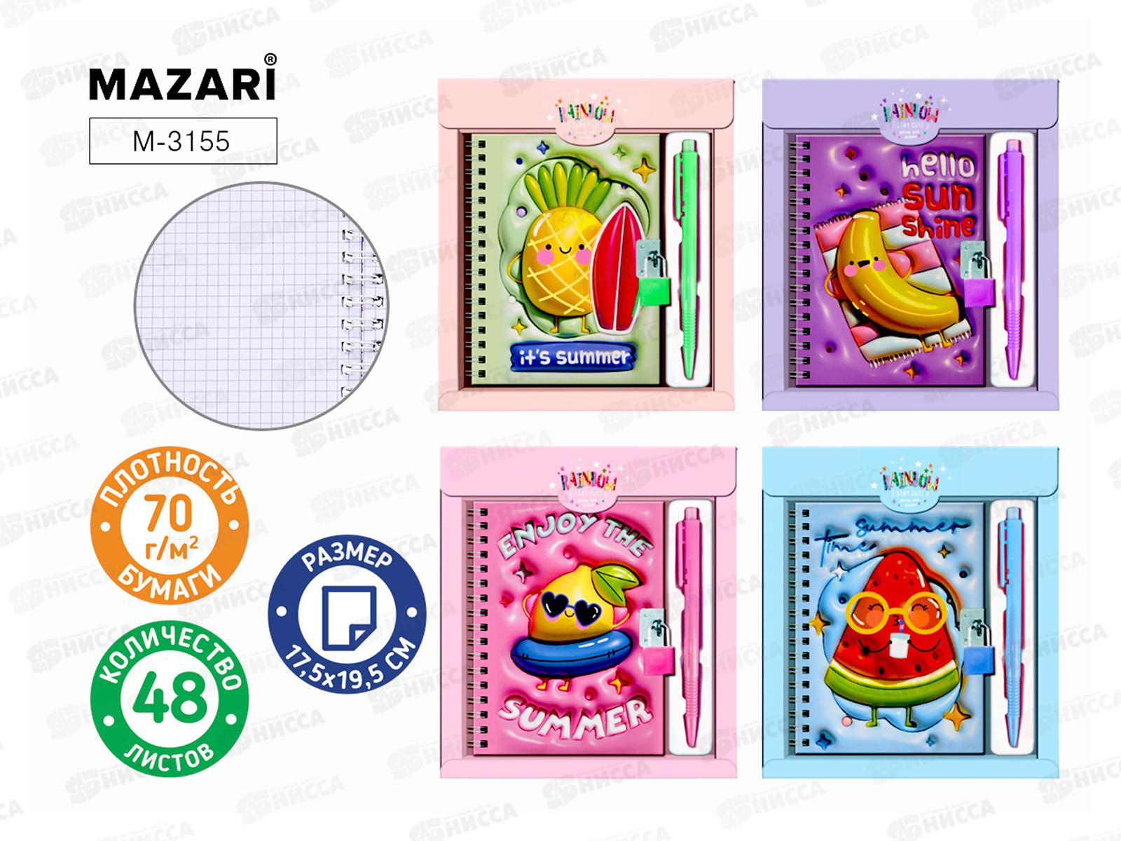 Код:602924; Набор подар MAZAR Фрукты (блокнот 38л+ручка) М-3155 *60