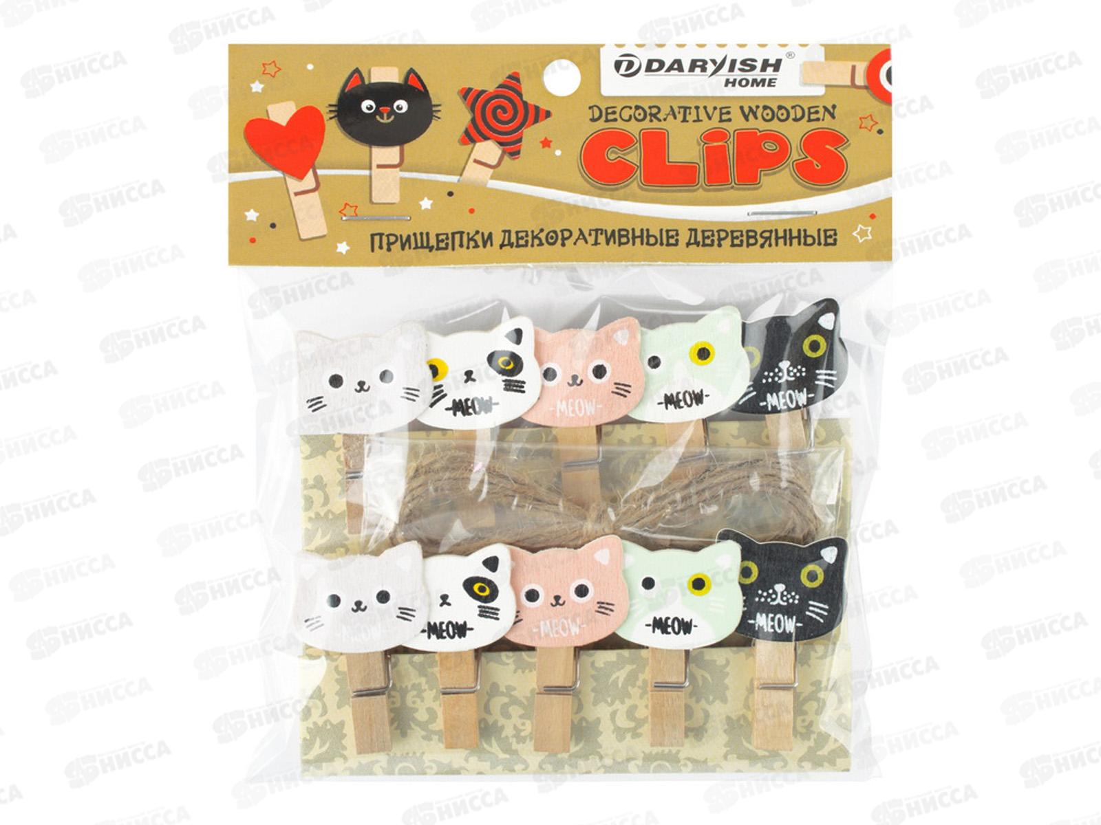 Код:595215; Прищепки декор. Котики деревян. 3,5*07см 10шт. М-1545 *12