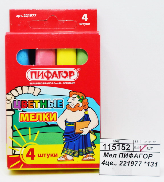 Код:115152; Мел ПИФАГОР 4 цвета , 221977 *131