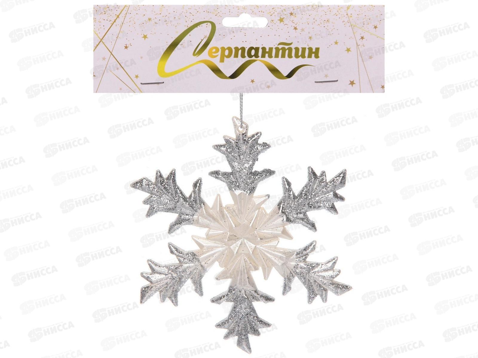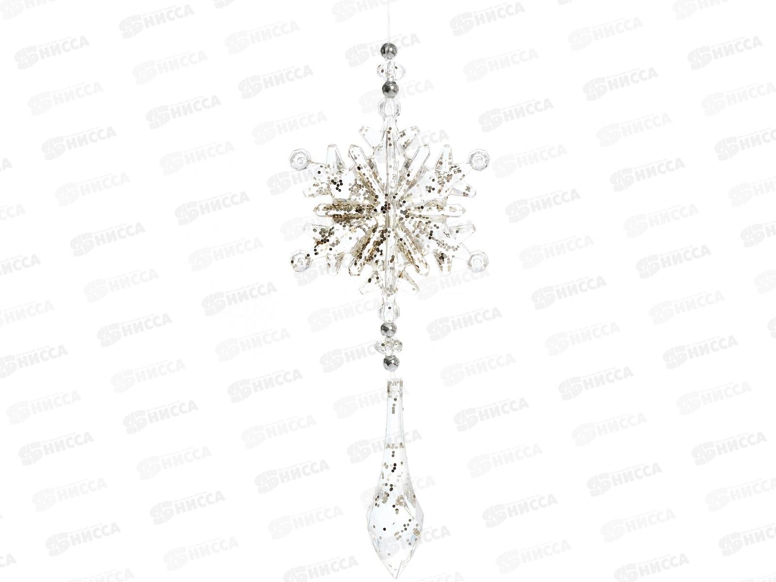 Код:586696; Подвеска "Морозная снежинка" 12см бел/серебро 916-2142