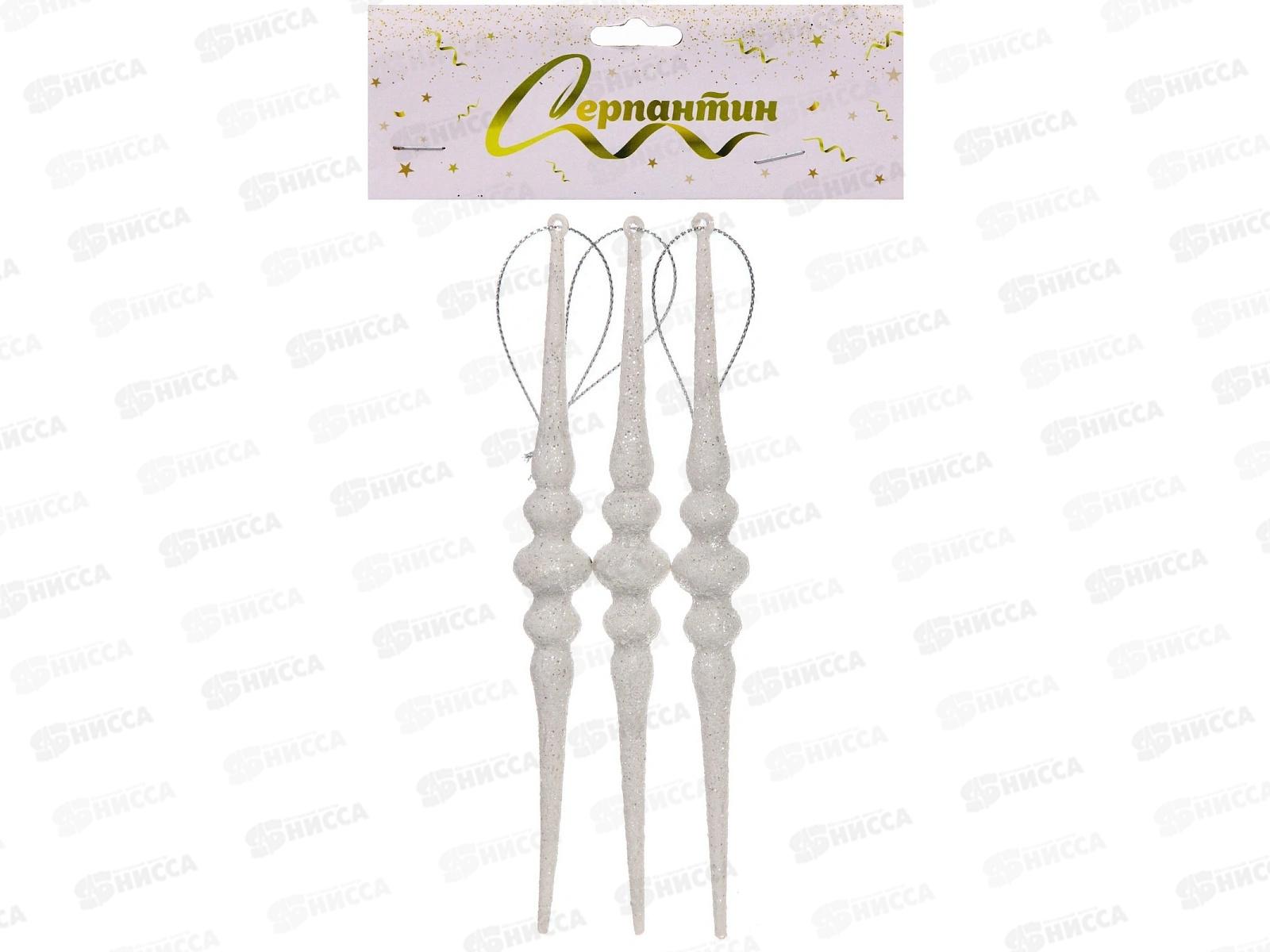 Код:586694; Подвеска "Сосулька" 16см 3шт белый 916-1988