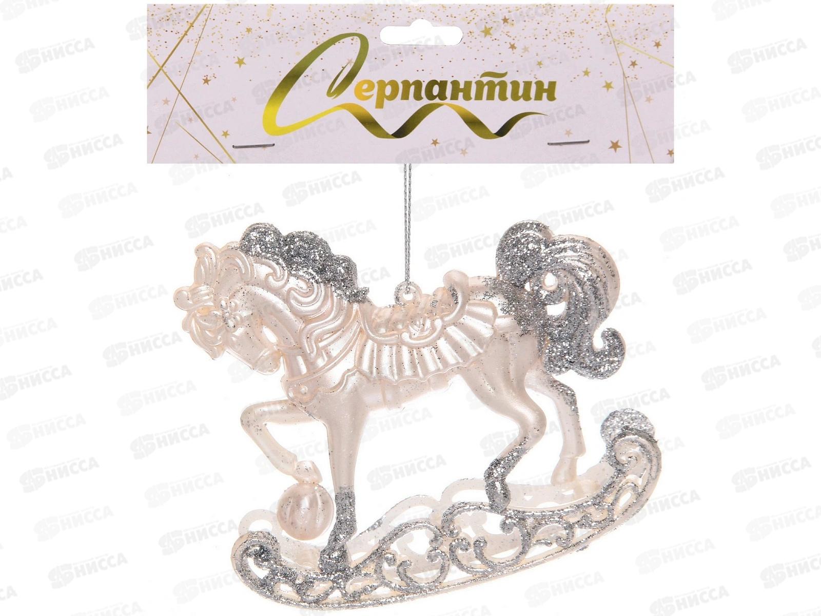 Код:586698; Подвеска "Морозная лошадка" 10см бел/серебро 916-2147