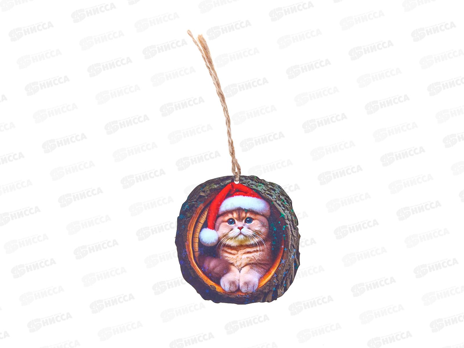 Код:587145; Подвеска на елку дерево нг-ПЦД-012 Белый котик в дупле двустороняя